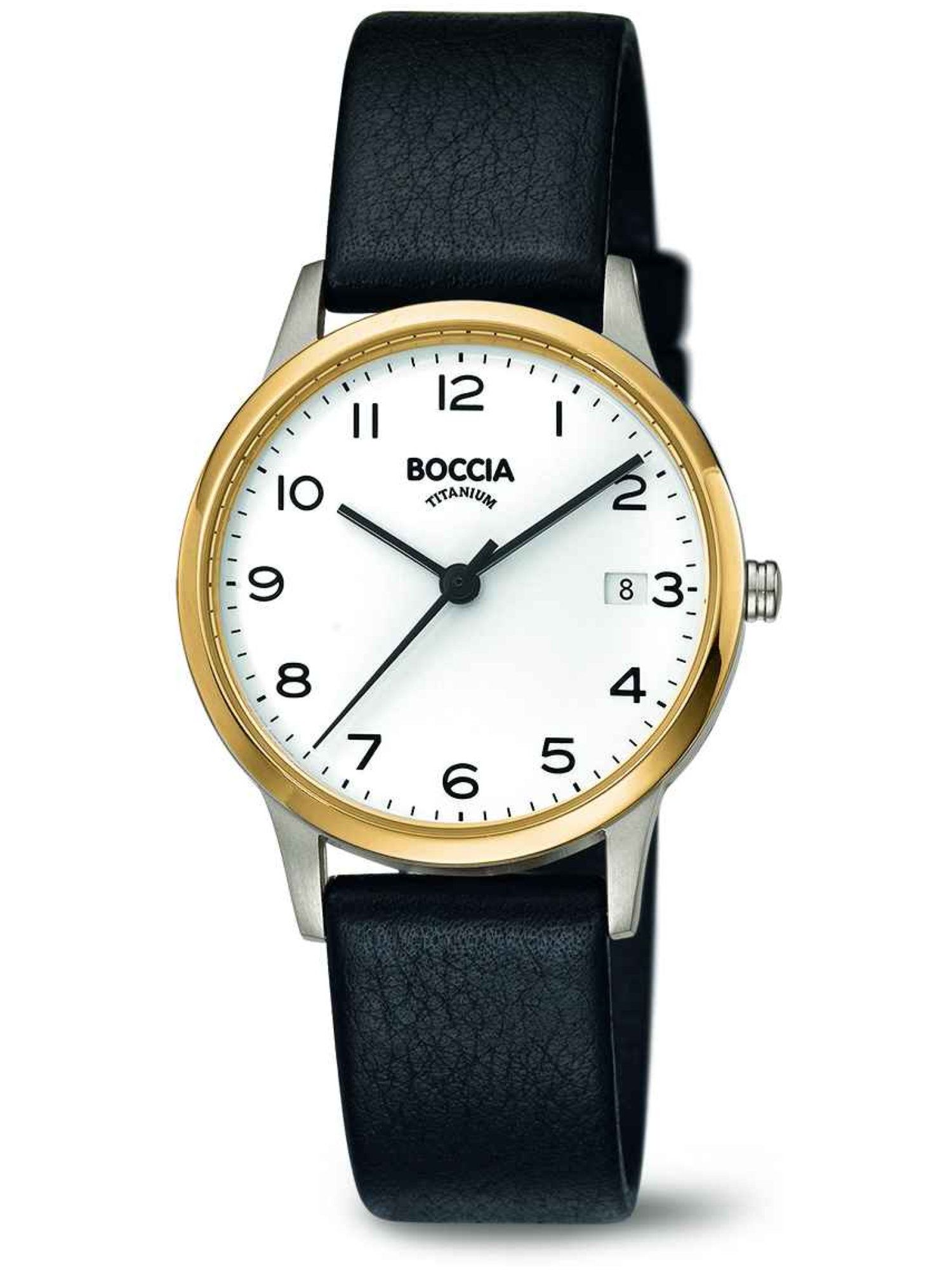 Boccia Titanium 3310-04 Uhr Damenuhr Lederarmband Datum schwarz