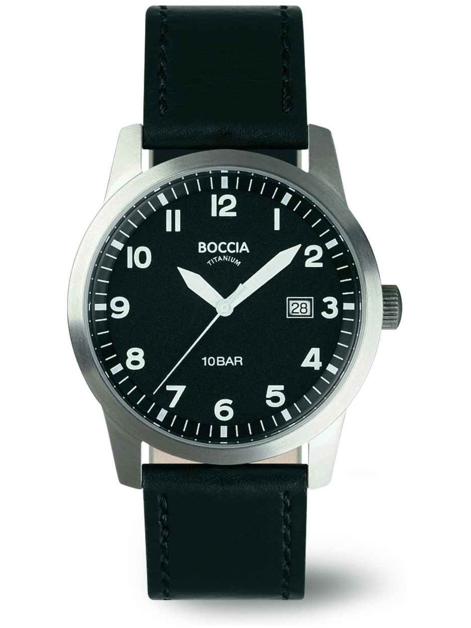 Boccia Titanium 3631-01 Uhr Herrenuhr Lederarmband Datum schwarz