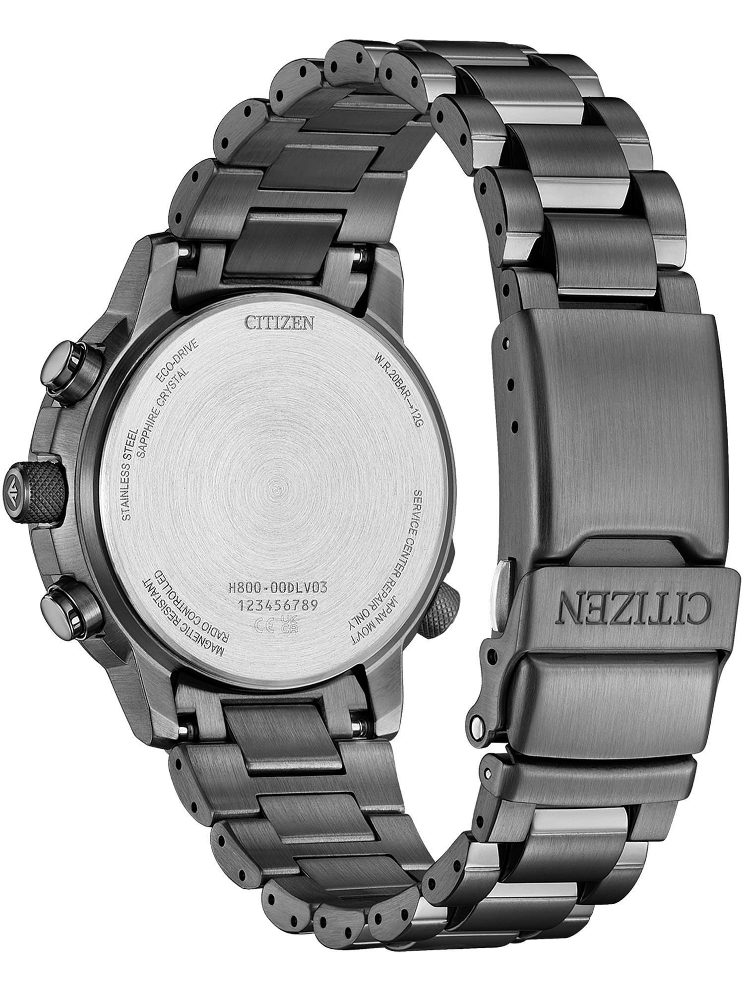 Ewiger Kalender, Stoppuhr: max. 60 min, 1/20 sek, Eco-Drive, Anzeige der Energiereserve, Tag/Datum, Anzeige der Batterieentladung, Antimagnetisch, 24h Anzeige