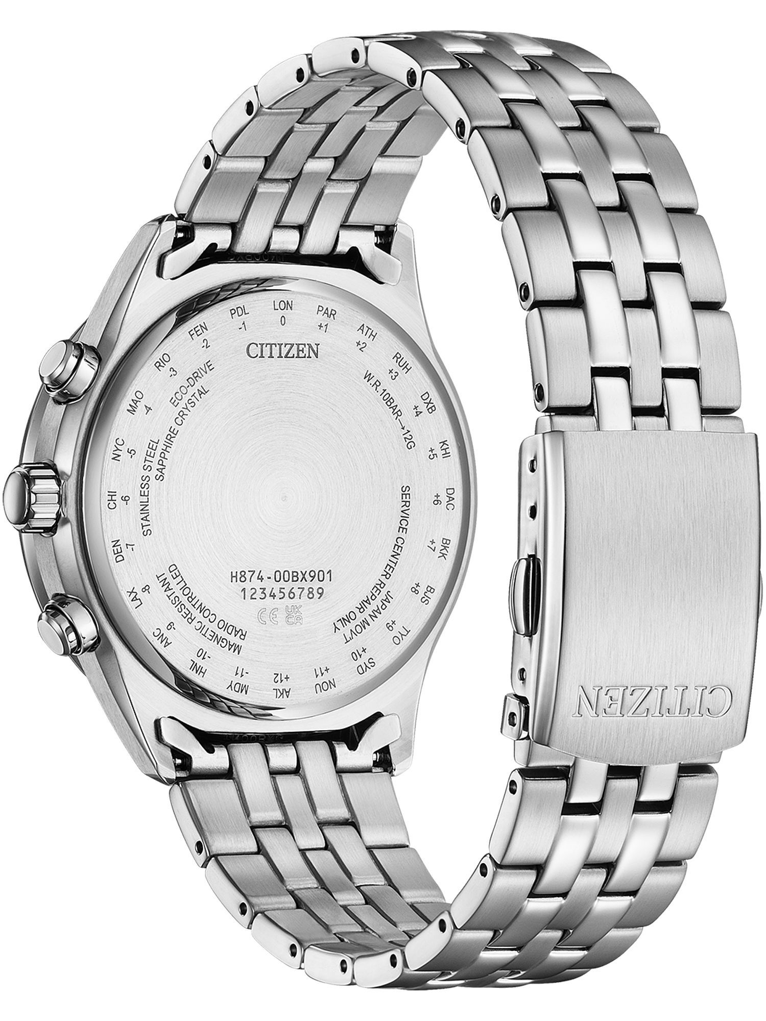 Anzeige der Energiereserve, Eco-Drive, Ewiger Kalender, Tag/Datum, Anzeige der Batterieentladung, Antimagnetisch, Automatische Zeigerkorrektur, 24h Anzeige