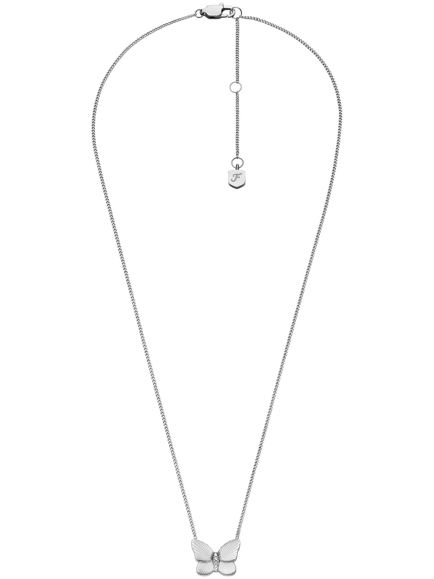 Fossil JF04935SET Herren Collier Schmetterling Edelstahl Silber Weiß 40,5 cm