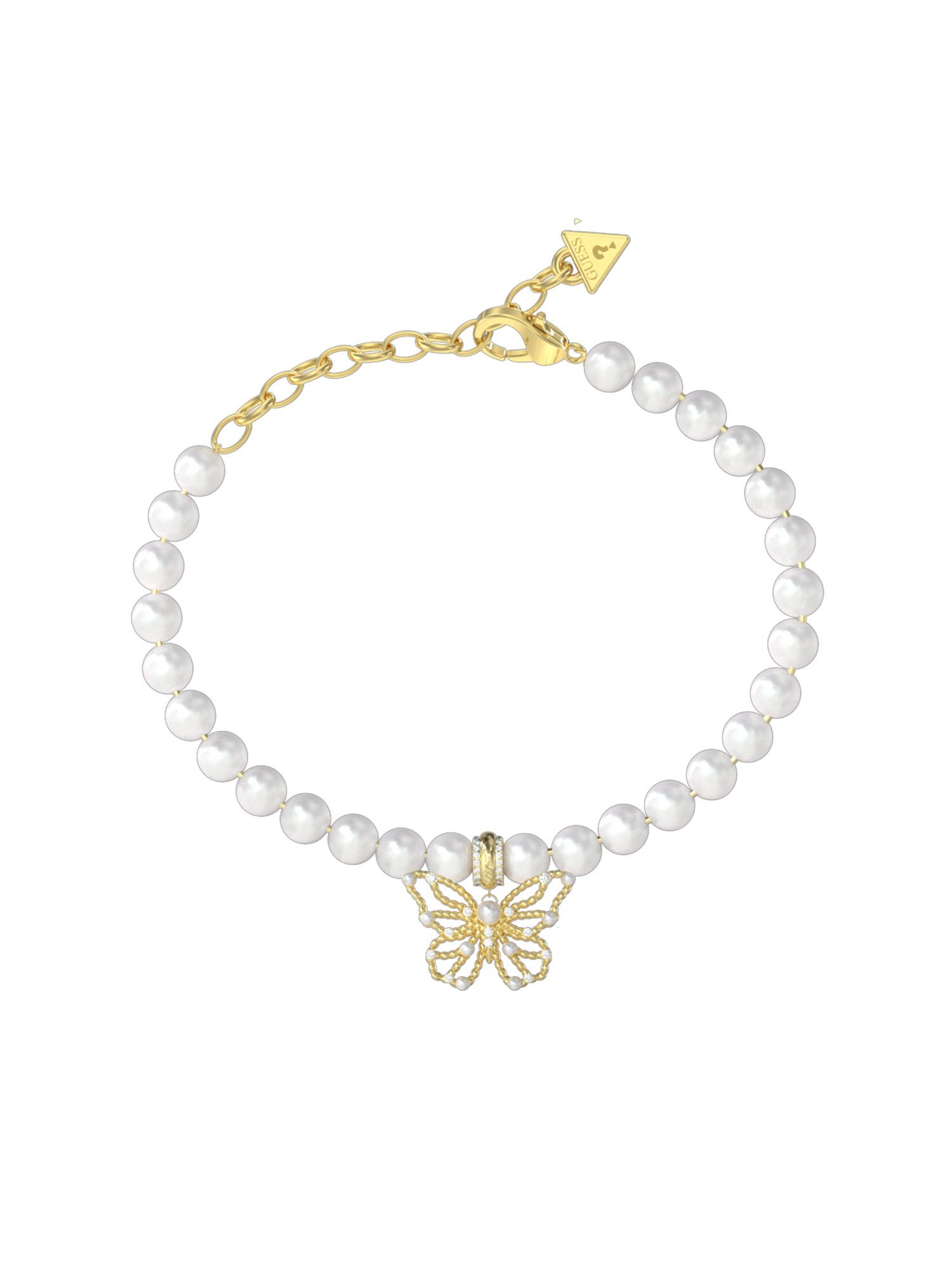 Guess JUBB06124JWYGL Damen Armband Schmetterling Edelstahl Gold weiß 23 cm