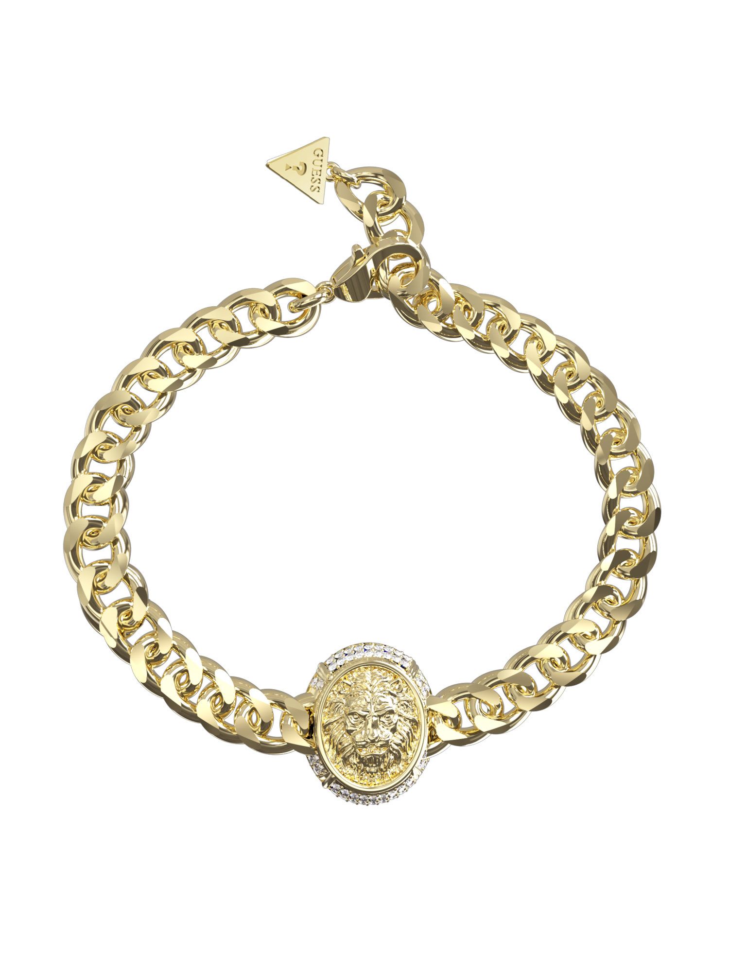 Guess JUBB06190JWYGL Damen Armband Löwe Edelstahl Gold weiß 21,5 cm