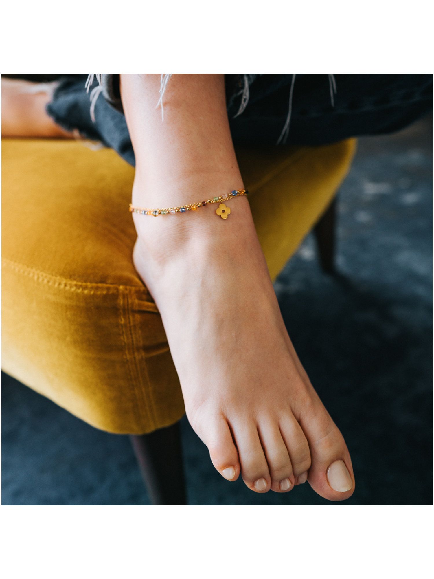 Julie Julsen JJAC31058G Damen Fußkettchen Blume Edelstahl Gold weiß 27 cm