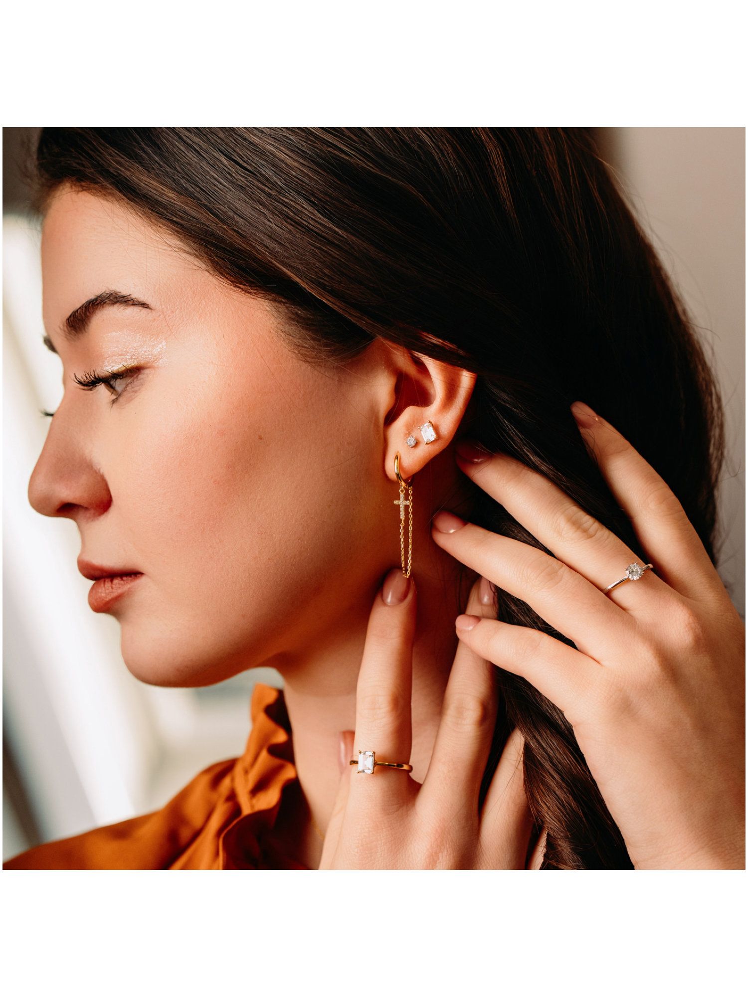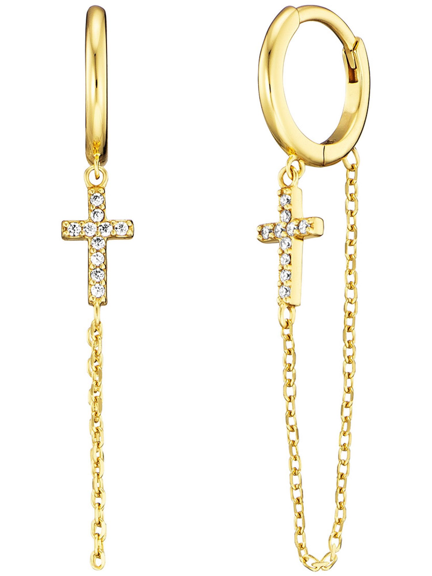 Julie Julsen JJER34208-5G Damen Creolen Kreuz Sterling-Silber 925 Gold weiß