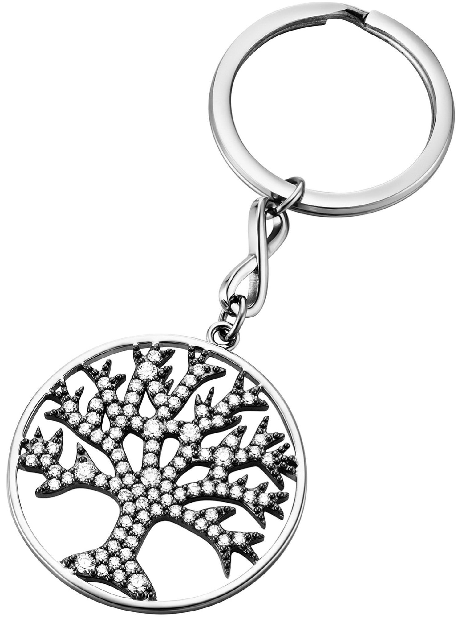 Julie Julsen JJKR29489SBLK Damen Schlüsselanhänger Lebensbaum Edelstahl Silber weiß