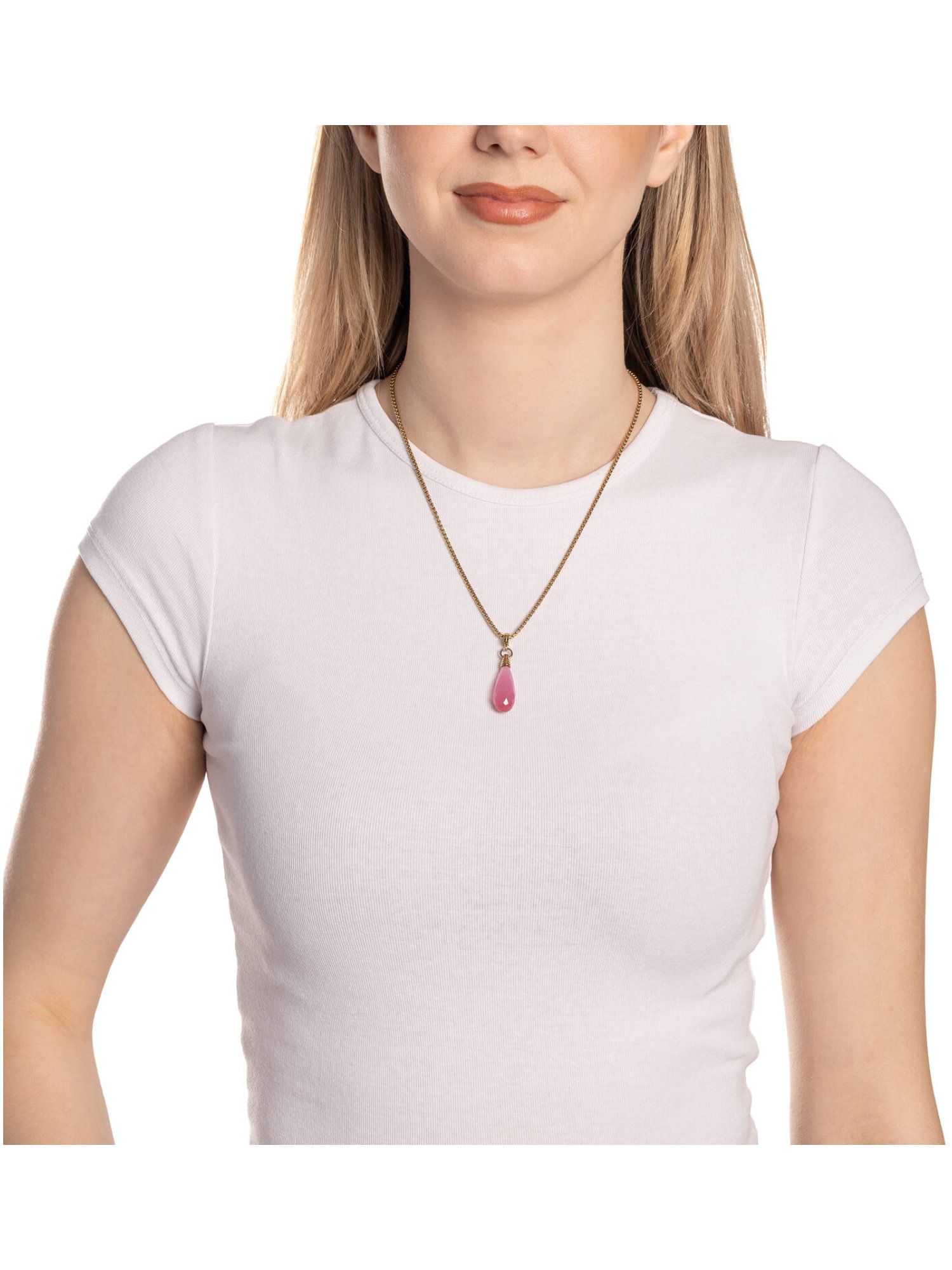 Der längliche Anhänger aus poliertem Edelstahl mit goldener Ionenplattierung hält einen facettierten Tropfen aus Catseye in zartem Pink, der durch seine changierende Oberfläche wunderschön schimmert. Die Kombination aus Gold und sanftem Rosé verleiht dem Schmuckstück eine edle, moderne Note. Ob einzeln getragen oder kombiniert – FRISCO ist ein feiner Hingucker mit harmonischer Farbwirkung. Dank des Clips in Größe S lässt sich der Anhänger einfach an Basis-Ketten oder Armbändern befestigen und individuell kombinieren.