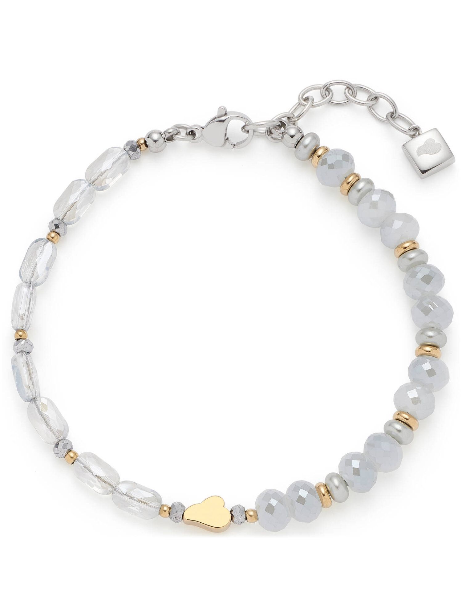 Das Armband MARIT überzeugt mit einem modernen, femininen Design in zartem Grau-Blau und warmem Gold. Die harmonische Kombination aus facettierten Glasperlen, blauen Perlen und goldfarbenen Akzenten verleiht dem Schmuckstück einen eleganten, sommerlich-leichten Charakter. Mittig setzt die kleine LEONARDO Wolke in poliertem Gold einen stilvollen Akzent. Dank des Karabinerverschlusses mit Verlängerungskette lässt sich die Länge individuell anpassen.