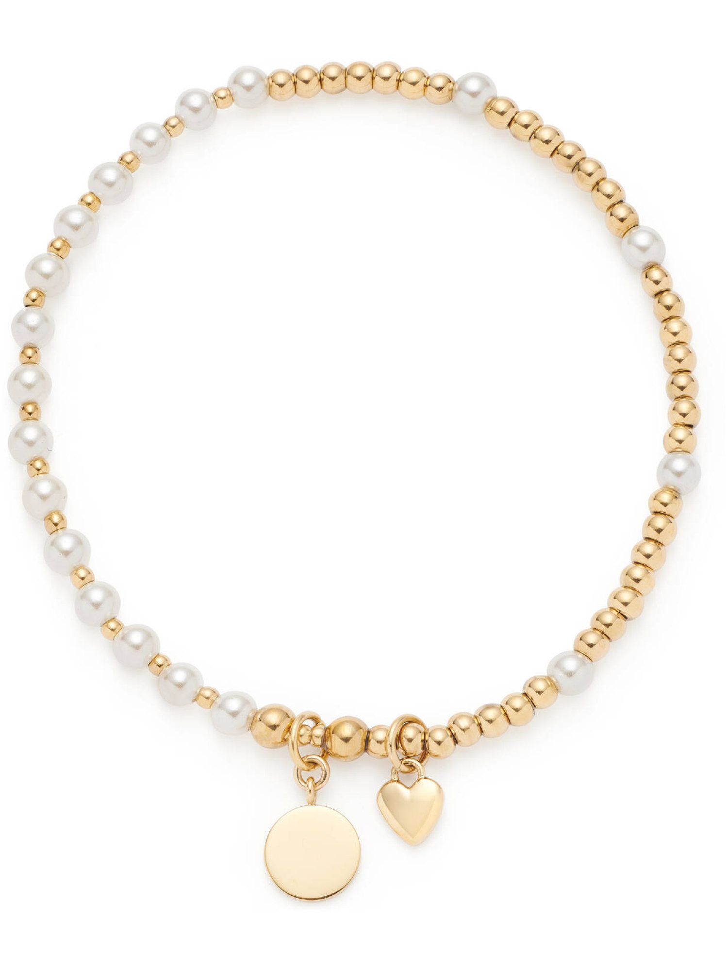 Das Armband besteht aus polierten Goldkugeln und natürlich wirkenden, weißen Perlen, die in harmonischem Wechsel angeordnet sind. Die glänzenden Metallkugeln und die zarten Perlen sorgen für ein sanftes Farbspiel mit feinem Schimmer. Ein kleines, gravierbares Plättchen sowie ein herzförmiger Anhänger mit LEONARDO Logo runden das Design stilvoll ab. Dank elastischem Zugband lässt sich das Armband bequem anlegen und angenehm tragen.
