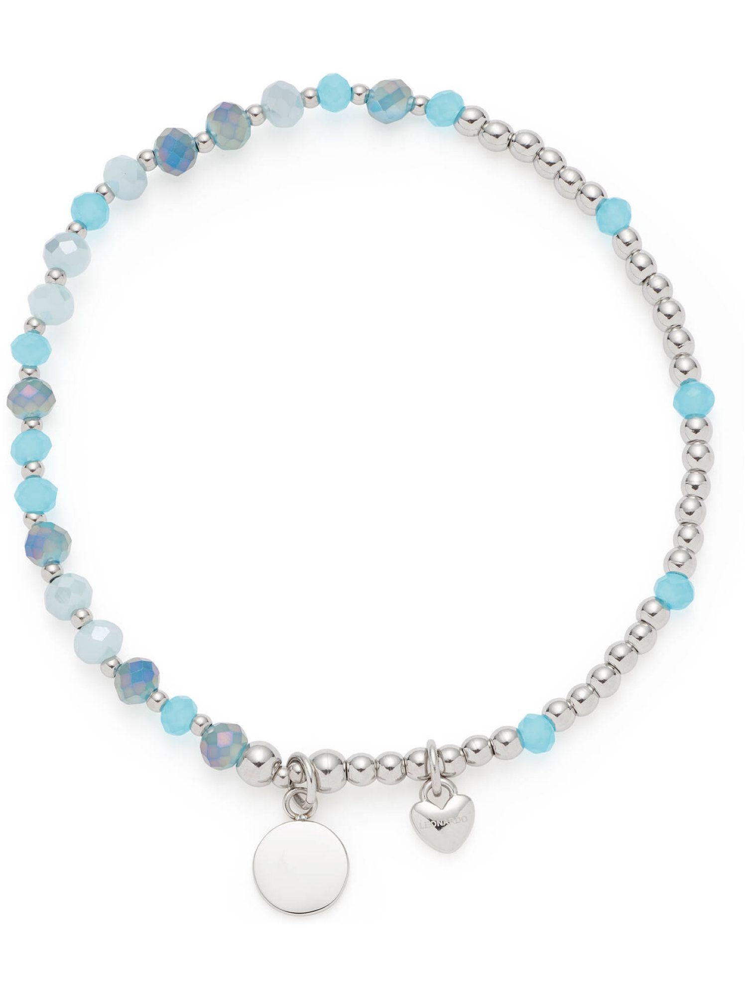 Das Armband besteht aus Glasschliffperlen in Blautönen von Himmelblau bis Cyanblau, die sich mit polierten Stahlkugeln abwechseln. Ein kleines Herz mit LEONARDO Logo und ein rundes Gravurplättchen verleihen dem Armband eine persönliche Note. Das elastische Zugband sorgt für hohen Tragekomfort und einfaches Anlegen. Das Armband UNITA ist ein stilvolles Accessoire für alle, die dezente Farben und klares Design lieben.