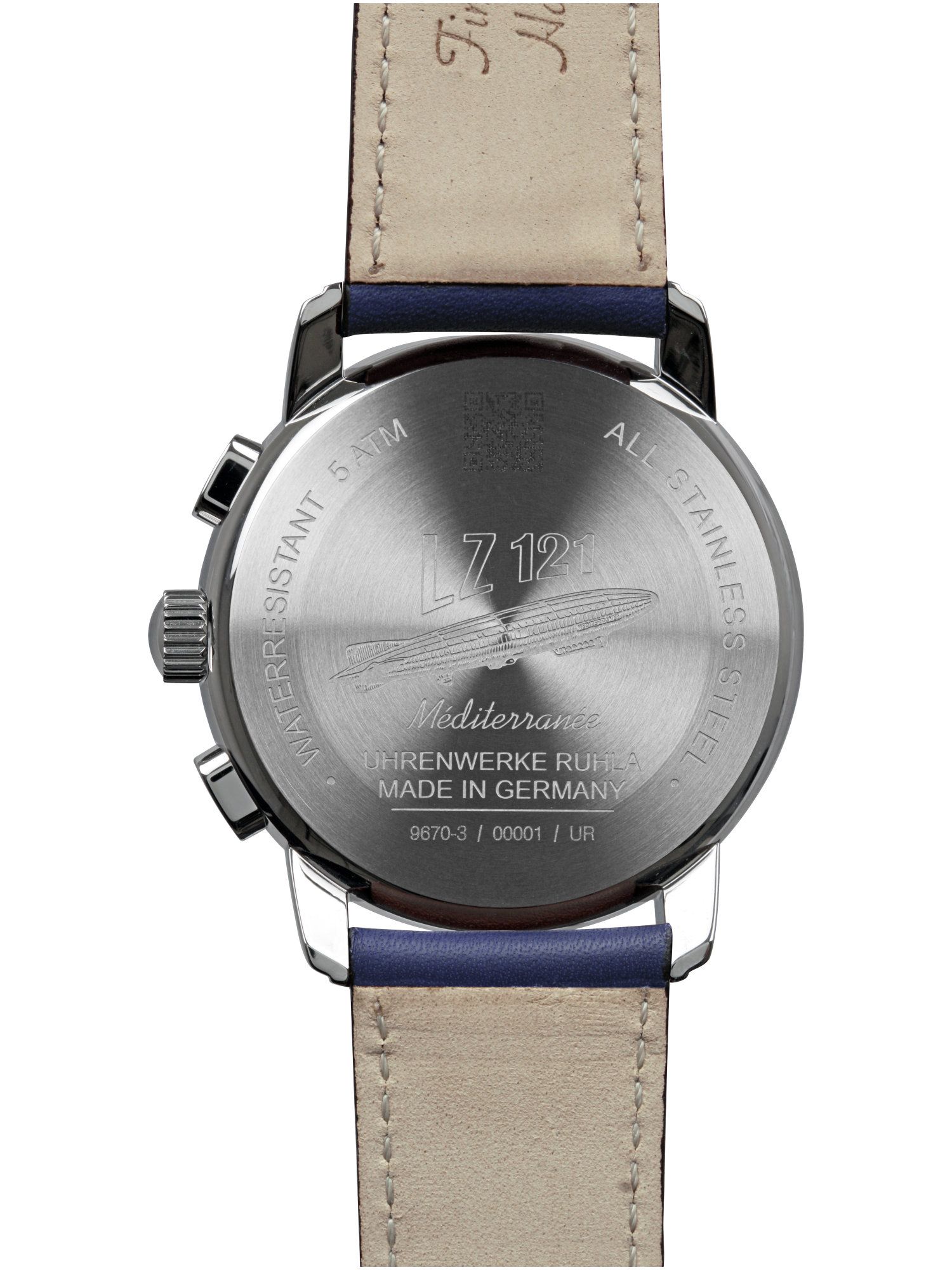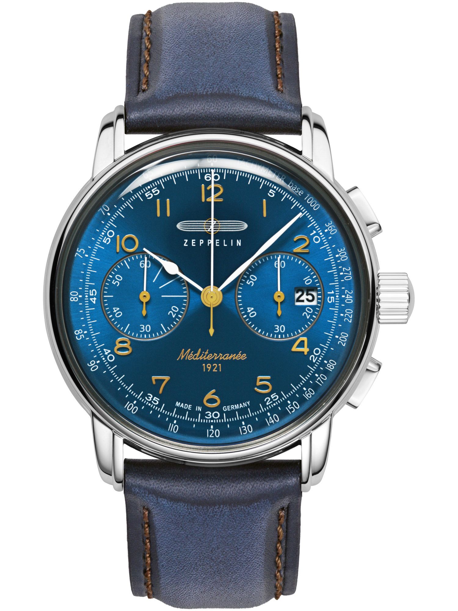 ZEPPELIN 9670-3 Chronograph Uhr Herrenuhr Lederarmband Chrono Datum blau
